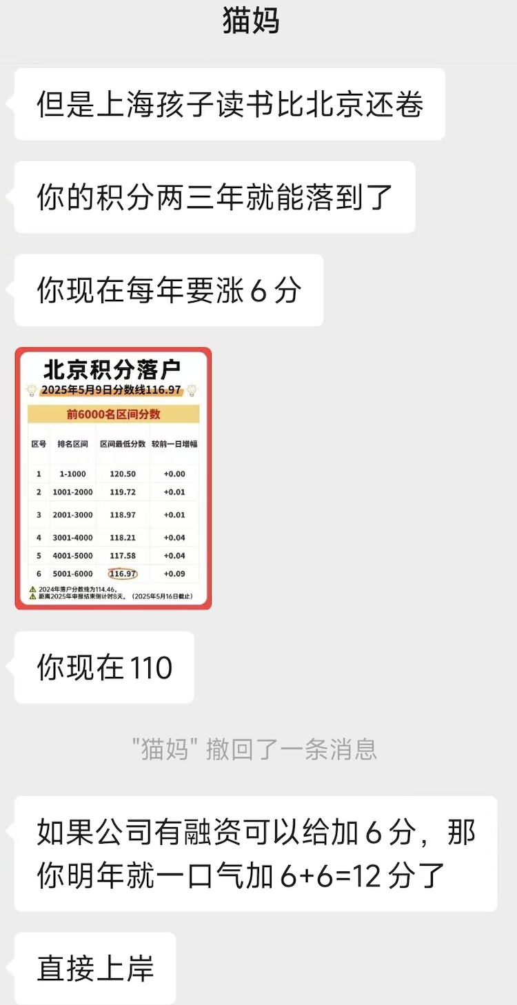我把这个新闻转发给老婆了,让她判断一下,像这种举家搬迁的大事我尊重她的意见,如果她说想去上海我会去认真确认一下细节。