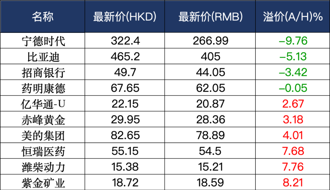 周五上市的恒瑞医药高开低走,最终收涨25%,a股相较于h股的溢价率7.68%,这个溢价率算低的,在154个ah股里溢价率倒数第8。目前有4家公司a股比港股便宜,分别是宁德时代、比亚迪、招商银行、药明康德。