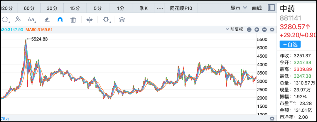 中药板块也已经10年没涨过了,分币不赚,主打陪伴。