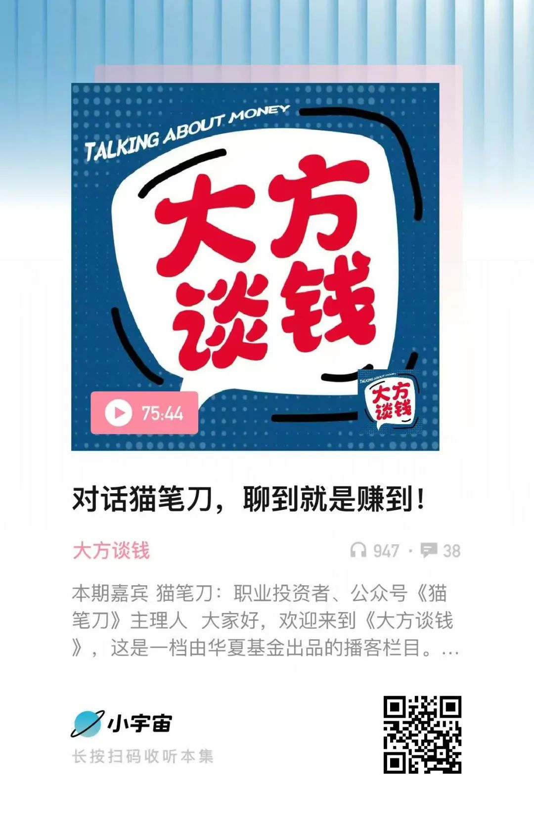 差不多就这些,最后说一下我之前录制了一期播客访谈类节目,是在小宇宙平台。他们平台的创始人是我20年前就在水木论坛认识的朋友,现在创业做内容平台,我一直说想帮忙推广一下,正好华夏在小宇宙上有个频道,我就跑过去友情客串了一期。