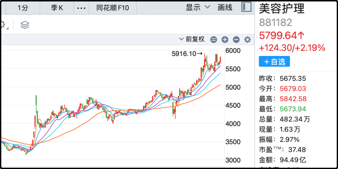 排第二的美容护理+3.1%,排第三的种业+2.1%,没有什么特别强相关的信息,美容护理的炒作有很持续的延续性,板块从年初以来就一直在涨,属于年轻人悦己经济的板块。种业我觉得就是抽风涨一波,没找到能持续的叙事。